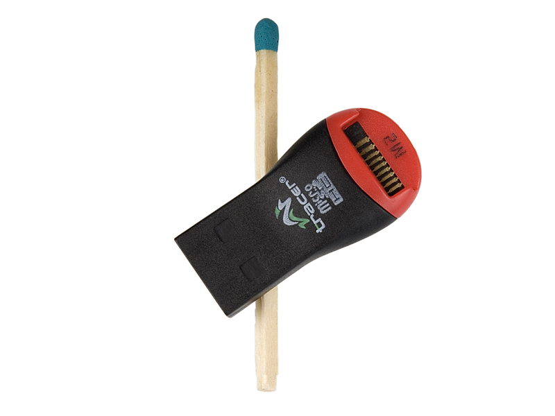 Mini memory card reader C19 supports Micro SD/SDHC/M2 memory cards.