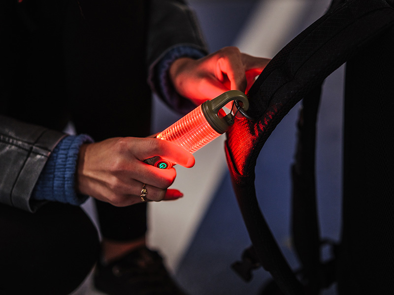 Thanks to its compact size, Tracer CampFlash easily fits into a backpack, bag, or pocket. The integrated hanging hook allows you to suspend the flashlight inside a tent or under a shelter, providing practical overhead lighting.