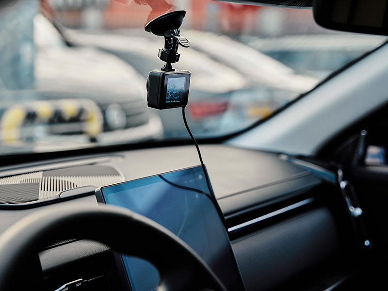 Thanks to the 120-degree wide field of view, the camera easily monitors the road and records events relevant to driver and pedestrian safety.