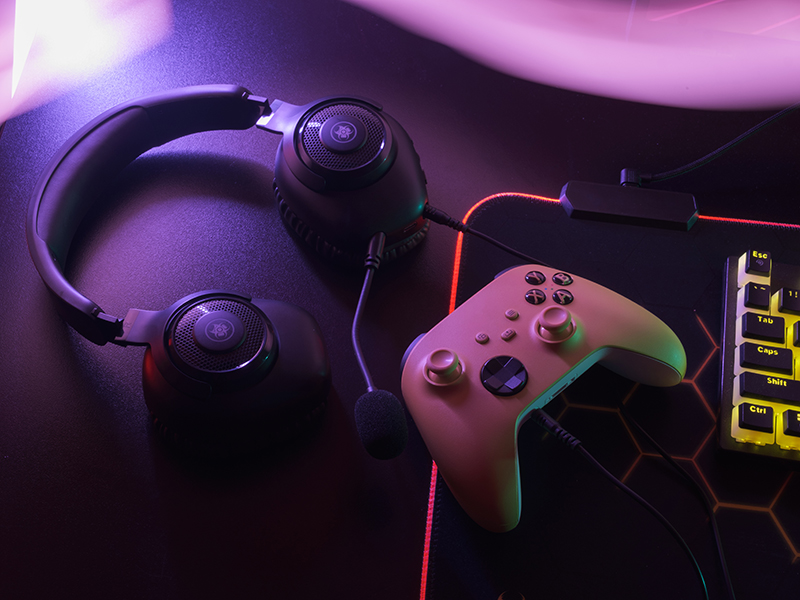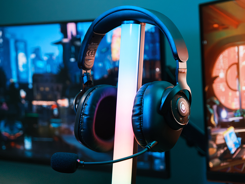 With a weight of just 240 grams, soft ear cups and an adjustable headband, the headphones are extremely comfortable even for long hours of sessions. Subtle RGB lighting adds a modern, gaming touch.
