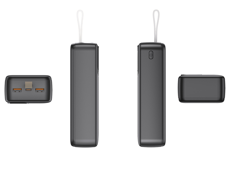 Two USB-C input ports provide convenient and flexible charging of the power bank itself, enhancing usability and compatibility with modern charging accessories.