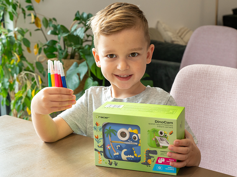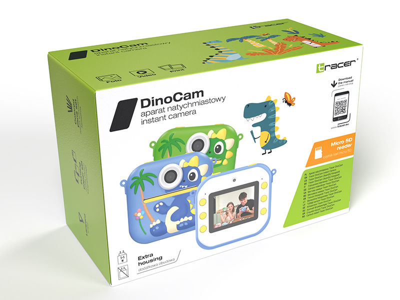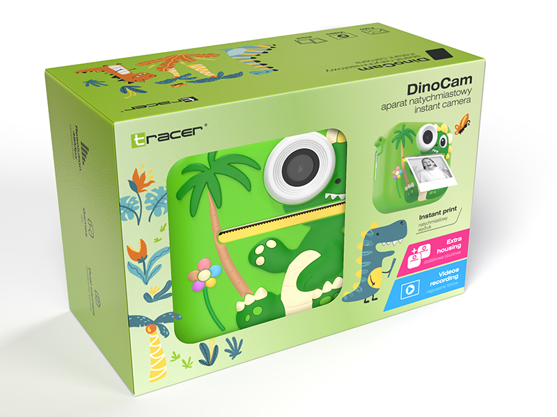 The Tracer DinoCam is a camera designed with the little ones in mind, which allows you to print photos instantly and provide lots of fun with additional features. It's perfect for kids who want to capture the most important moments and have them instantly with them in the form of photos. With colorful accessories and interactive features, the Tracer DinoCam will become every toddler's favorite gadget!