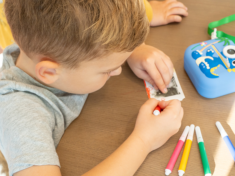 The Tracer DinoCam comes with a set of colorful markers that allow kids to decorate their photos, adding drawings, lettering or other creative elements. It's a great way to develop imagination and creativity, while learning to have fun with photography.