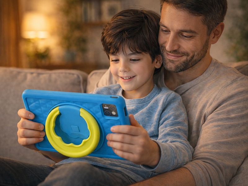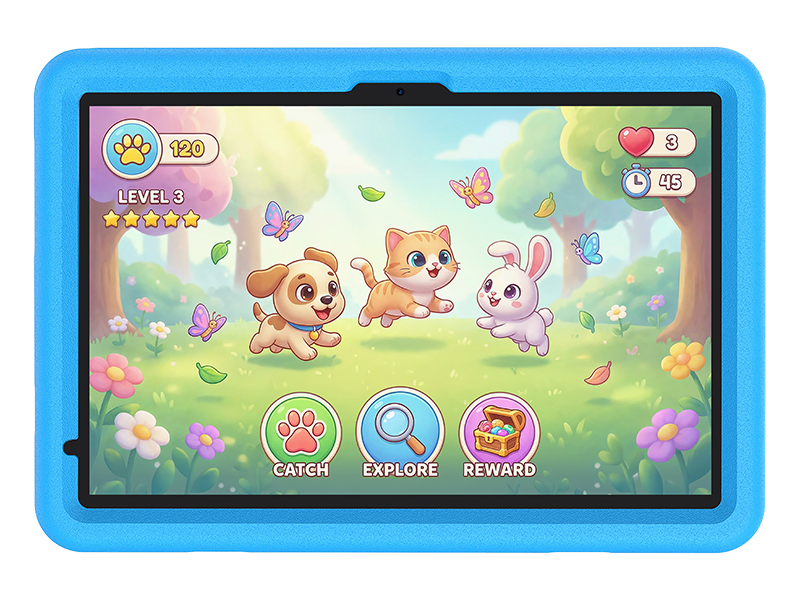 The 8-inch IPS display delivers good color reproduction and wide viewing angles. Educational content, games, and videos remain clear and comfortable to watch regardless of how the tablet is held.