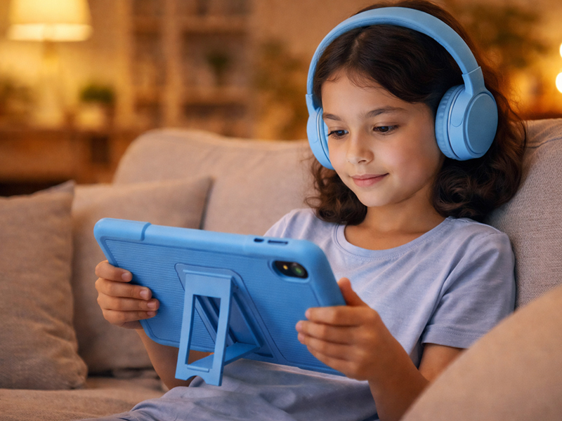 The 7-inch IPS display delivers good color reproduction and wide viewing angles. Educational content, games, and videos remain clear and pleasant to watch regardless of how the tablet is held. The compact size makes the device easy to use, especially for younger children.