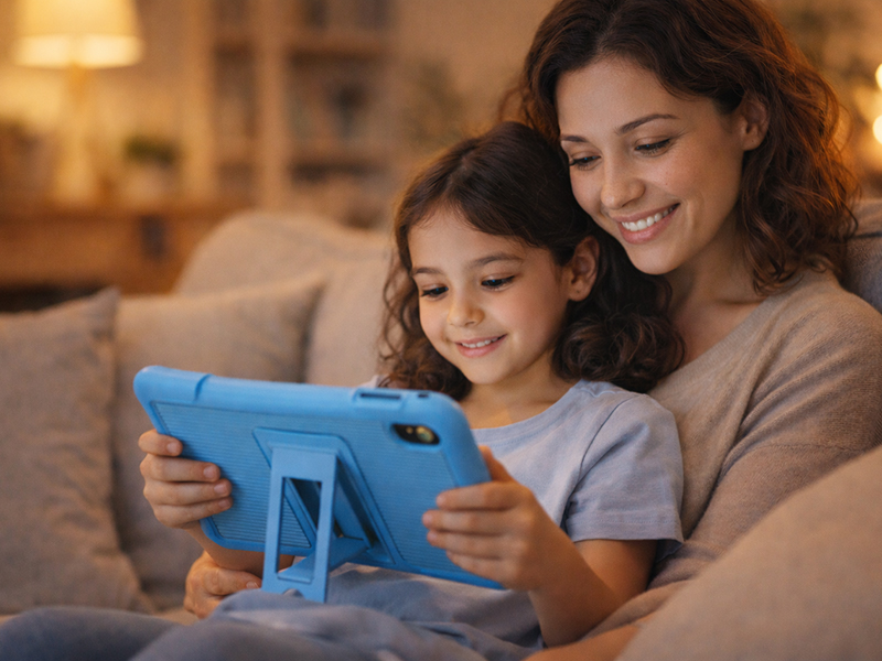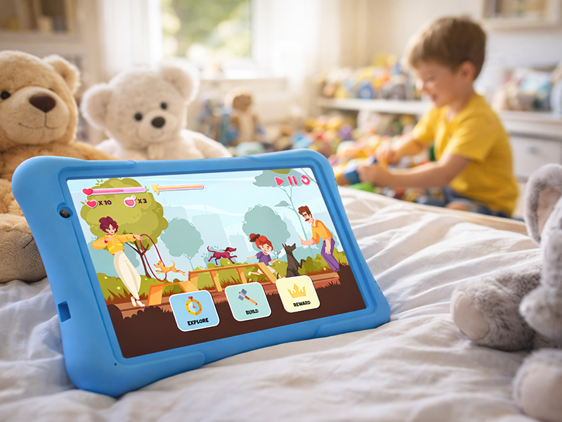 The 8-inch IPS display delivers good color reproduction and wide viewing angles. Educational content, games, and videos remain clear and comfortable to watch regardless of how the tablet is held.