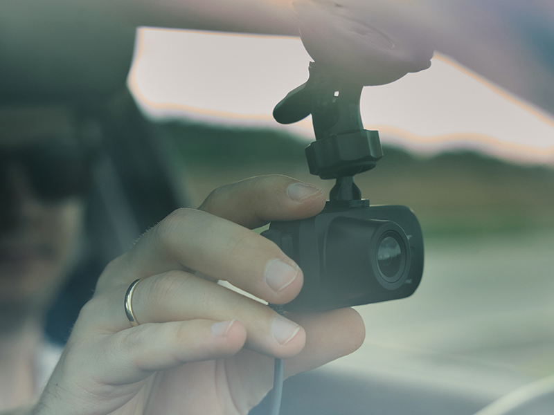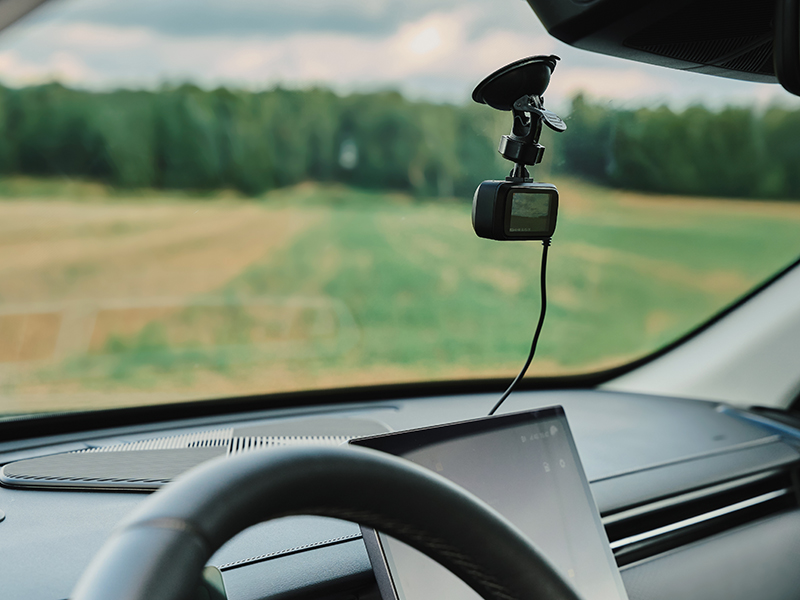 Thanks to the 150-degree wide field of view, the camera easily monitors the road and records events relevant to driver and pedestrian safety.