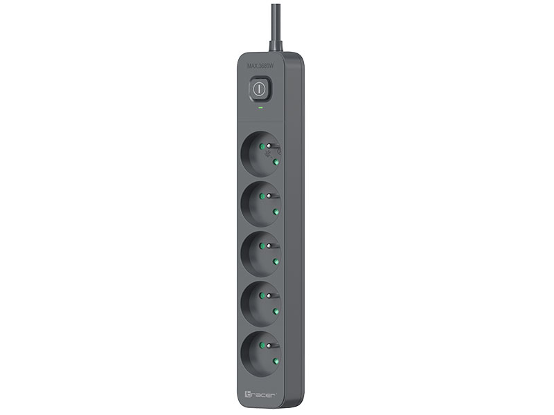 TRACER Power Line+ 1.8 m Graphite surge protector power strip (5 outlets)