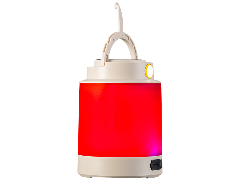 The main LED light source with a luminous flux of 300 lumens provides even illumination of the surrounding area. Additional RGB lighting allows you to select a colorful lighting mode, creating ambient illumination inside a tent or at a campsite. Three operating modes are available: high, soft, and color mode.