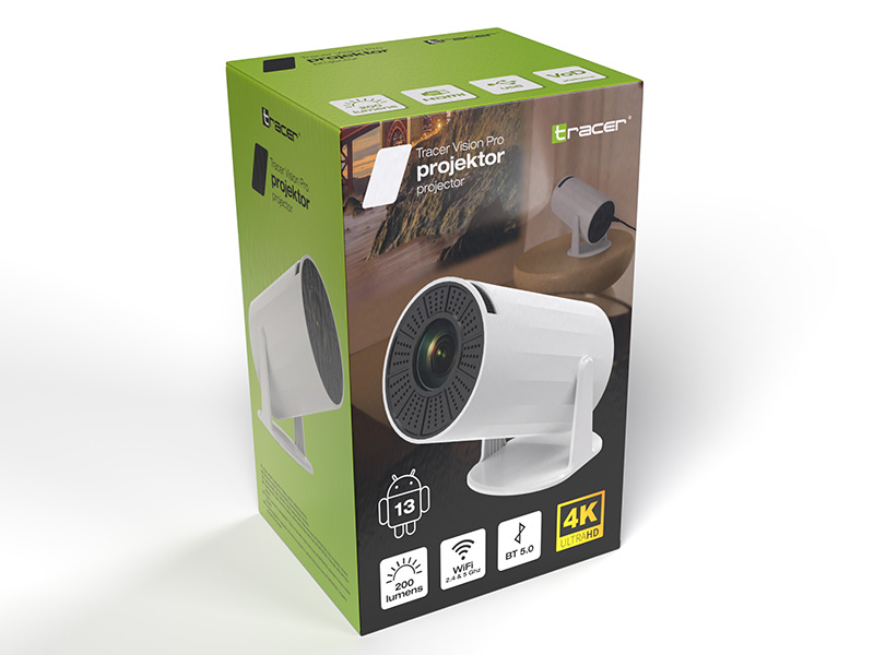 The Tracer Vivid Pro is a compact projector with Android 13 that will open up new possibilities for home entertainment. With support for streaming apps and a wide range of features, you can watch films, series and play games on a large screen without the need for additional devices.